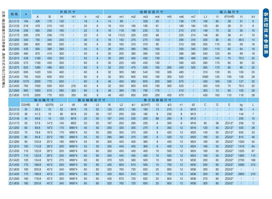 高速軸傳速不大于1500轉/分。齒輪傳動圓周速度不大于20米/秒。工作環境溫度為-40~45℃,如果低于0℃,啟動前潤滑油應預熱至0℃以上,本減速機可用于正反兩個方向運轉,但部分機型告訴軸帶單向油泵,默認方向為;面對輸出軸,輸出軸為順時針旋轉。如方向改變,請在訂貨時說明。